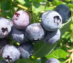 Голубика Nui (Нуи). Куст приземистый, до 180 см в высоту. Плоды очень крупные (до 3,5 грамм, 21 мм в диаметре), немного плоские, формируются в виде пятиугольной формы благодаря вызреванию в тугих гроздях (кистях). Превосходная способность к хранению и транспортировке. Охлажденная ягода сохраняется по меньшей мере 2-3 недели. Очень хороший вкус с кислинкой. Молодые растения требуют в первые годы укрытия на зиму.