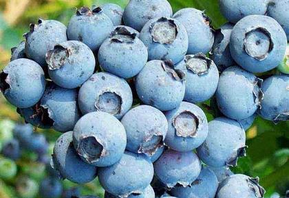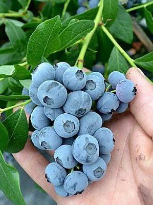 Ягоды очень крупные, сплюснутые, очень вкусные, с плотной кожицей, ароматные, с небольшим, сухим рубчиком, светло-синие с более светлыми просветами. Более поздние плоды несколько мельче (однако, крупнее ягод сорта 'Bluecrop').