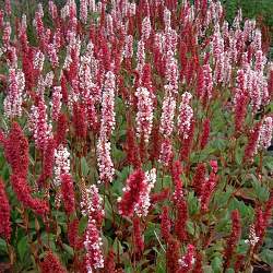Горец Dimity (Димити). Почвопокровное растение с красными и розовыми соцветиями высотой 30 см. Цветет с июня в течение трех месяцев, декоративен и после цветения, когда плоды и листья приобретают темно-красный цвет. Предпочитает тень, но неплохо растет и на солнце, засухоустойчив. На плодородных почвах горец родственный может сильно разрастаться, подавляя сорняки и менее выносливые виды. Зимостоек, но в бесснежные зимы страдает. Желательно профилактическое укрытие хвойным лапником. Пригоден для срезки и сухих букетов.