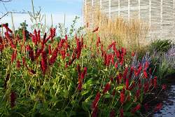 Горец свечевидный Fat Domino (Фэт Домино). Достигает в высоту 0,6-1,5 м. листья простые, ланцетовидные. Цветки мелкие красные или темно-бордовые, собраны в свечевидные соцветия. Цветет в июне-августе. Разрастается быстро.