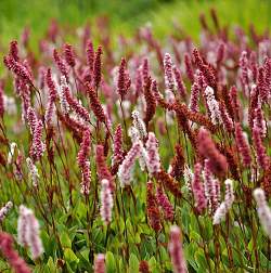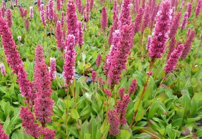 Горец Karbouter (Карбаутэ). Многолетнее, травянистое растение 20-25 см высотой. Стебли приподнимающиеся. Листья овально-ланцетные. Цветки мелкие, бледно-розовые, к концу цветения розовато-красные, собраны в плотные колосовидные соцветия 6-10 см длиной.