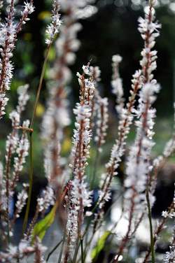 Горец свечевидный Alba (Альба). Великолепный, объёмный, неприхотливый многолетник для современных насаждений. Зацветает дружно, бесчисленными, кремово-белыми цветами, на оливково-коричневых стеблях. Цветет продолжительно, до заморозков. Любит солнечные участки, но хорошо выдерживает полутень. Хорошо работает в одиночной и групповой посадке. Хорошо сочетается с другими растениями. Отличный вариант для городских и общественных пространств.