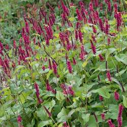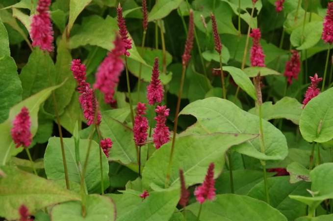 Горец свечевидный Lisan (Лисан). Литья овально-вытянутые, светло-зеленые. Над компактным кустом возвышаются пурпурно-розовые свечки. Очень красивый сорт, цветет обильно и продолжительно. Любит солнечные участки.