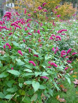 Горец с необычными поникающими соцветиями ярко-малинового цвета. Высота около 80 см. Цветет продолжительно, вплоть до морозов. Очень украшает сады в естественном стиле. Великолепен в массивах.