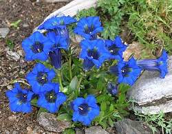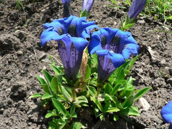 Горечавка Corona (Корона). Сорт горечавки бесстебельной. Высота в цвету 10-12 см. Относится к весенне-цветущей группе, цветет в мае-июне. Цветок ярко-синий, трубчатый, до 7 см в длину. В период цветения листьев под цветками не видно.