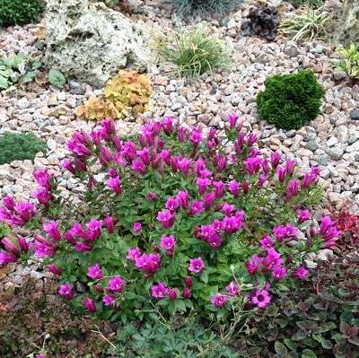 Горечавка Little Pinkie (Литл Пинки) — сорт, выведенный на основе горечавки китайско-украшенной. Эффектный компактный полувечнозеленый многолетник с пурпурно-розовыми цветками колокольчатой формы.