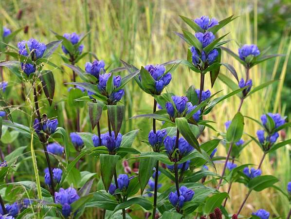 Горечавка трехцветковая. Многолетнее растение высотой до 80 сантиметров цветки сине-фиолетовые, колокольчатые, длиной до 2 сантиметров, располагаются пучками на верхушке стеблей и в пазухах верхних листьев. Период цветения — август-сентябрь. Неприхотлива, полностью зимостойка в средней полосе России.