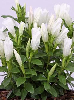 Горечавка White Magic (Вайт Мэджик). Пряморастущий сорт формирует облиственные стебли, на концах которых размещаются белые, трубчатые, колокольчатые цветки длиной 3-4 см. Высота растения во время цветения — 30 см.