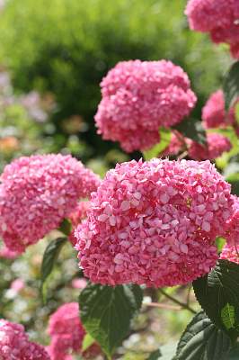 Гортензия Bella Anna (Белла Анна). Куст пряморослый, округлый, хорошо разветвлённый, высотой 75-90 см, диаметром 90 см. Побеги сильные, хорошо держат соцветия. Листья тёмно-зелёные.