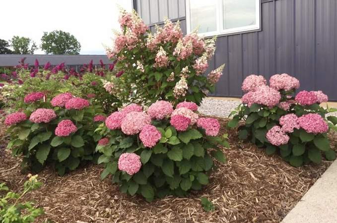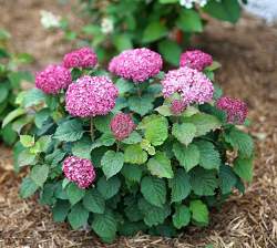 Гортензия BellaRagazza Mauvette (Белла Рагацца Моветта). Карликовый сорт древовидной гортензии. Высота до 50 см. Куст округлый, побеги сильные, цветение сверхобильное. Цветки розовые. Зацветает в середине июня.