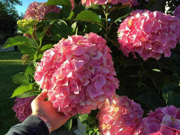 Гортензия Belle Seduction (Бель Седакшэн). Куст высотой и диаметром до 160 см, компактный, плотный. Побеги сильные, устойчивые даже в дождливую погоду. Листья овальные, зубчатые, светло-зеленые, осенью желтеют. Соцветия крупные, очень плотные, шаровидные, светло-розового цвета. В зависимости от реакции почвы цвет может меняться от светло-розового до голубоватого.