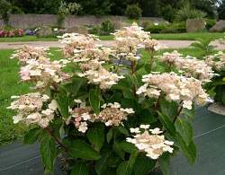 Карликовый плотный куст высотой до 80 см, цветки белые, отцветающие – розовые, собраны в округлые плоские соцветия, цветёт в июле-августе, предпочитает солнечные и полутенистые места, почвы плодородные, влажные, слегка кислые, рекомендуется для одиночных или групповых посадок.