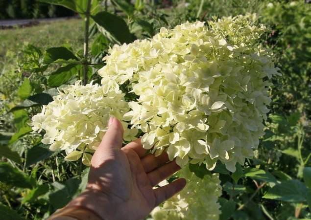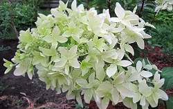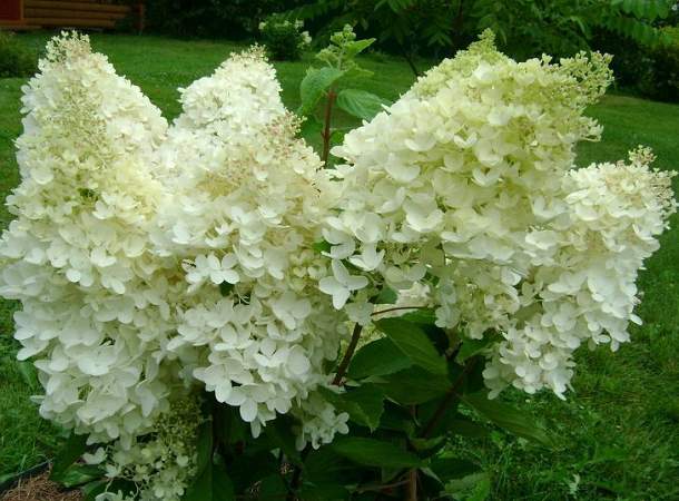 Соцветия легкие, воздушные, очень крупные — 30-35 см, в виде пирамидальной метелки и состоят в основном из множества стерильных цветков, имеющих изящные тонкие лепестки и сидящие на длинных цветоножках, благодаря чему создается эффект ажурного затейливого кружева.