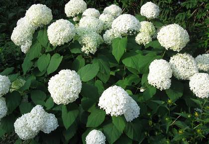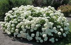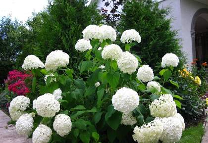 Один из самых популярных сортов древовидной гортензии. Успех у садоводов ей обеспечили компактные размеры куста и огромные белые шапки соцветий.