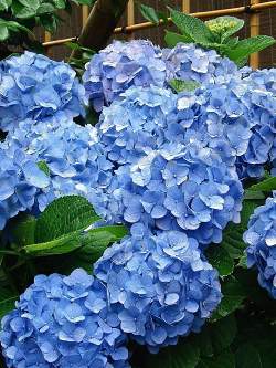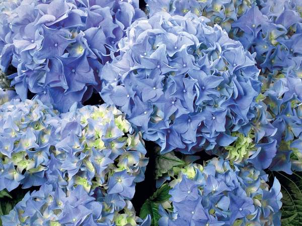 Гортензия Early Blue (Эрли Блю). Цветёт на прошлогодних побегах в июле-сентябре, cоцветия шаровидные, цветки голубые, куст компактный, сильноветвистый, высотой и шириной 90-120 см, можно выращивать в горшках, место полутенистое, требует влажной, плодородной почвы и укрытия на зиму, зона 5 (до -23°С) .
