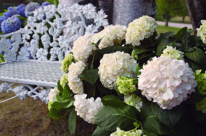 Гортензия Endless Summer The Bride (Эндлесс Саммэр Зе Брайд). Цветки белые, медленно переходят в мягкие розовато-зеленоватые тона, соцветия пышные, шаровидные, диаметром 10-15 см. Мощные ветви растут вертикально, великолепная срезка. Очень выносливый сорт. Ремонтантная, цветёт в июле-октябре сначала на прошлогодних побегах, затем на побегах текущего года.