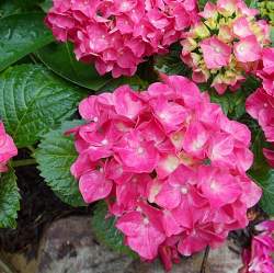 Гортензия крупнолистная Glowing Embers (Гловин Эмберс). Цветки красно-малиновые до пурпурно-красных, собраны в очень крупные соцветия диаметром 20 см. Окраска не зависит от кислотности почвы. Цветение обильное, с середины июня до сентября.
