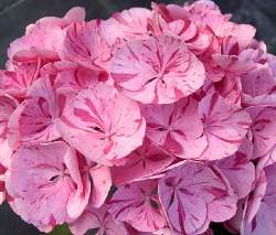 Гортензия Hovaria Sweet Fantasy (Свит Фэнтэзи). Соцветия шаровидные, состоят из крупных ярко-розовых цветков. Цветение обильное, в июле-сентябре на прошлогодних побегах.