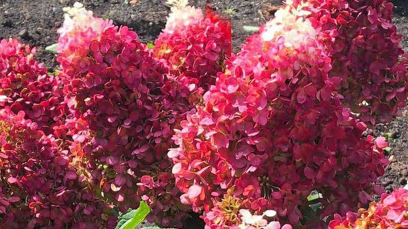 Гортензия Indian Summer/Red Velvet (Индиан Саммэ/Ред Велвет). Новинка 2022 г. от Алекса Шумахера. Сорт имеет гармоничную форму куста — округлую, почти шаровидную. Высота 120 см. Диаметр 100 см. Соцветия крупные, состоят из стерильных цветков. Вначале они белые, затем розовеют и в конце цветения становятся ярко-малиновыми. Начинает цветение в июле.