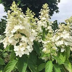 Гортензия метельчатая Kyushu (Кьюшу). Превосходный быстрорастущий сорт. Очень устойчивый и неприхотливый. Куст высокий, до 350 см, побеги прямые, габитус слегка расходящийся, в форме вазы. Соцветия состоят из стерильных и фертильных цветков, в форме конуса. Стерильные цветки очень крупные, 4 см в диаметре, не розовеют. Соцветия около 25 см в длину. Листья крупные.