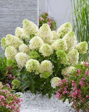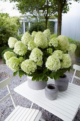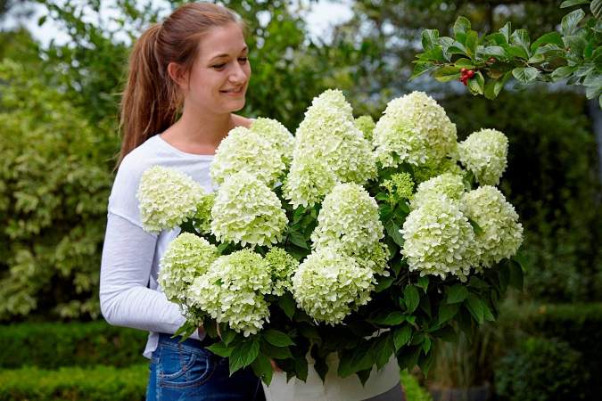 Стерильные цветки собраны в крупное куполообразное соцветие. Цветки зеленовато-белые. Можно выращивать в контейнерах. Превосходно смотрится на переднем плане смешанных цветников, а также рядом с патио и террасами.