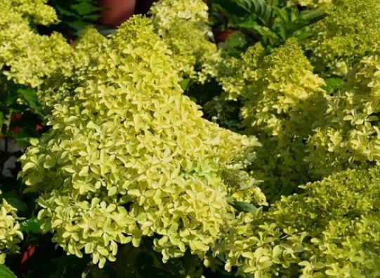 Гортензия Magical Lime Sparkle (Мэджикал Лайм Спаркл). Стерильные цветки диаметром 2,6 см, звёздчатой формы, в начале цветения белые, затем лаймового, к концу цветения постепенно краснеют. Соцветия широко-пирамидальные, длиной 22 см и диаметром 18 см.