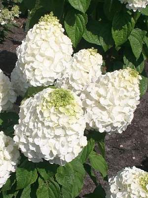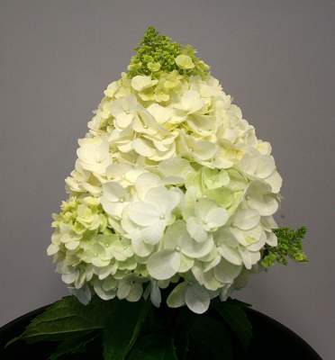 Даже совсем невысокий куст способен выдавать потрясающее цветение. Поскольку соцветия состоит из стерильных цветков, метелка похожа на плотную пирамиду. Побеги крепкие, не полегают. Исключительная новинка!