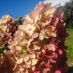 В начале цветения гортензия Фудзи вся в белом, потом розовеет, и к концу цветения, словно одноименная гора на закате, становится малиновой. Цветет продолжительно, с июля.
