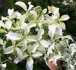 Гортензия метельчатая Magical Starlight (Мэджикал Старлайт). Цветки белые, необычайно крупные, звездчатые с вытянутыми лепестками. Ароматный сорт. Соцветия большие, кружевные. Стерильные цветки удивительно красивы и элегантны, лепестки расположены в одной плоскости, широко расставлены и по форме напоминают звезду.