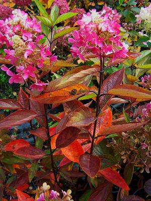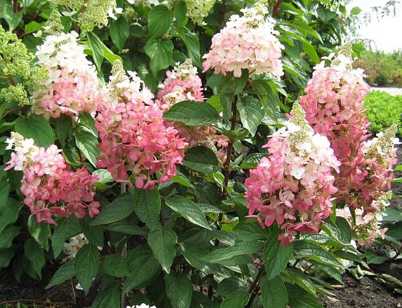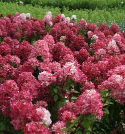 Гортензия Magical Vesuvio (Мэджикал Везувио). Очень красивая новинка из серии Magical. Гортензия Мэджикал Везувий имеет компактный куст до 150 см высотой и около 100 см диаметром. Соцветия при этом очень крупные, высокие, узко-пирамидальные. Цветки крупные, в соцветии стерильных цветков больше, чем фертильных, соцветие плотное. Этот сорт интересен тем, что довольно рано начинает розоветь. А потом и вовсе становится огненно-красного цвета.