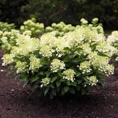 Куст высотой 60 см, в диаметре 70 см. Это очень красиво, когда куст гортензии приобретает слегка подушковидную форму. Побеги крепкие, коричневатые. Цветет с июля по сентябрь, обильно. Отлично смотрится в контейнерах. В утепленных контейнерах может зимовать.