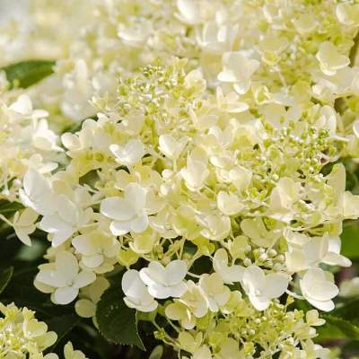Гортензия Milk and Honey (Милк энд Хани). Компактная новинка от Алекса Шумахера. Куст округлый, листья темно-зеленые. Соцветия состоят из стерильных и фертильных цветков, воздушные, изящные. Венчик имеет длинную трубочку, поэтому цветки словно порхают. Окраска цветков вначале слегка зеленоватая, затем желтовато-кремовая, позже розоватая.
