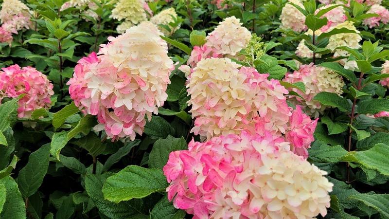 Гортензия Quick Fire Fab (Квик Фае Фаб). Новый сорт с превосходными качествами, детище питомника Proven Winners. Это, пожалуй, самая ранняя метельчатая гортензия. Цветки вначале зеленовато-кремовые, позже арбузно-розовые. Длительный период цветения означает, что вы будете наслаждаться яркими соцветиями около 4 месяцев в году. Высота 1,5 м.