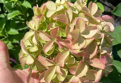 Гортензия метельчатая Whitelight (Вайт Лайт). Очень компактная гортензия с сильными прямыми побегами. Высота всего 100 см. Соцветия восхитительные, плотные, состоящие из очень крупных цветков с фестончатыми лепестками. Окраска в течение сезона меняется от лаймового до кремово-белого и затем до светло-розового.