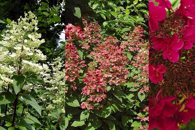 Гортензия Wim's Red (Вимс Ред). Сорт с очень крупными соцветиями — до 30-35 см в длину, которые на протяжении нескольких месяцев меняет окраску. Цветки вначале кремово-белые, потом розовые — темно-розовые и осенью винно-красные.