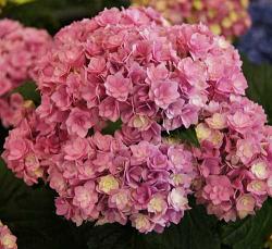 Гортензия You And Me Together (Ю Энд Ми Тугезе). Выведена в Японии (Киото). Приземистый и широкий куст. Соцветия очень крупные, округлой выпуклой формы, состоят из махровых цветков. Цветки в начале распускания зеленоватые, затем переходят к розовым или голубоватым тонам (в зависимости от кислотности почвы), затем в полном роспуске и по мере вегетации появляются более насыщенные красные или фиолетовые оттенки.