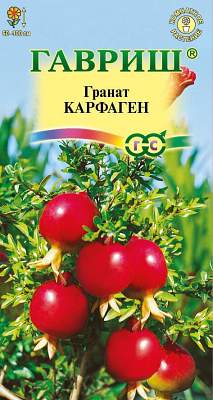 Гранат Карфаген (карликовый). Гранат — листопадный субропический кустарник. Растение неприхотливое, высотой до 60-100 см, с небольшими изумрудными эллиптическими листями. Цветет с мая по август красными цветками до 2,5-4 см в диаметре. Плоды диаметром до 5-7 см имеют многочисленные семена, окруженные сочной оболочкой. Сок приятный, кисло-сладкий. Предпочитает прямое солнце на окнах южной, юго-западной и западной экспозиции (летом желательно притенение), опрыскивания, регулярный полив водой комнатной температуры. При чрезмерном поливе могут растрескиваться плоды. По окончании весенних заморозков растение можно вынести в сад в полутень до осени. Зимой гранат сбрасывает листья. В этом состоянии его поливают очень редко и содержат при температуре 5-10 °C. Почвосмесь должна быть рыхлой и питательной (1ч. дерновая, 0,5 ч. перегнойная, 1 ч. листовая земля, 1ч.песок). Весной с начала роста побегов и до июля растение подкармливают еженедельно цветочным удобрением. В конце периода покоя гранат каждые 2 года пересаживают в более крупный сосуд. Семенами размножается довольно легко при обычной комнатной температуре. Их высевают на глубину 0,5 см. При температуре 25 °C всходы появляются через 2-6 недель. Молодые сеянцы для лучшего ветвления многократно прищипывают. В начале лета делают санитарную обрезку, удаляя слабые и направленные внутрь ветви. Ему можно придать любую форму кроны, в. т.ч. бонсай. Гранат обладает лекарственными свойствами: общеукреплящим, противодиарейным, жаропонижающим и др.
