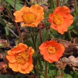Гравилат чилийский Beach House Apricot (Бич Хаус Эприкот). Кустик высотой до 60 см. Цветки крупные, ярко-оранжевые, простые или полумахровые. Местоположение требуется солнечное или полутень. Почвы предпочитает богатые гумусом, влажные. Для использования в групповых посадках, рабатках, бордюрах, в миксбордерах. Рядом с гравилатами можно высадить колокольчики, флоксы или пионы. Компактные виды хорошо смотрятся в альпинарии, рокарии.
