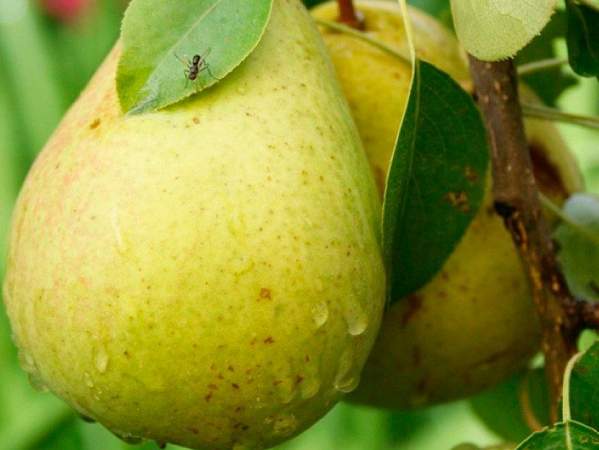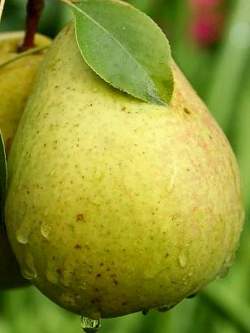 Плоды средней массы (140 г), одномерные, овальные или короткогрушевидные, правильной формы. Плодоножка толстая, вдавленная, прямопоставленная. Воронка мелкая, тупоконическая, со средней оржавленностью. Блюдце мелкое, слабобороздчатое. Кожица плода шероховатая, оржавленная, сухая, тусклая. Основная окраска плода зеленая в момент съема и золотисто-желтая в момент потребительской зрелости. Покровная окраска проявляется в виде легкого загара на солнечной стороне плода. Подкожные точки многочисленные, серые, хорошо заметные. Сердечко плода небольшое, эллиптическое. Семенные камеры закрытые, мелкие. Подчашечная трубка короткая. Семена мелкие, коричневые. Мякоть плодов зеленоватая, плотная, полумаслянистая, очень сочная, сладкая