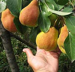 Груша Детская. Дерево в молодом возрасте с высокосферической, затем пирамидальной кроной. Плоды ниже средней величины, массой 60-80 г, короткогрушевидные. Поверхность неровная. Основная окраска светло-желтая, покровная — розовато-оранжевый румянец. Мякоть кремовая, сочная, сладкая, отличных вкусовых качеств. По созреванию плоды раннелетние. Созревание плодов неодновременное (с конца июля до середины августа).