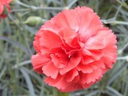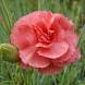 Гвоздика перистая Diana (Диана). Цветок удивительного лососевого цвета, довольно крупный. Сорт представляет собой небольшую подушковидную кочку до 30 см в высоту. Стебли тонкие, покрытые небольшими серо-зелёными листьями с характерным блеском.