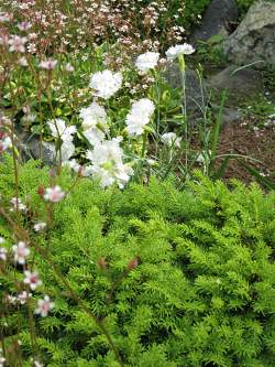 Многолетнее травянистое растение Высота растения 25-30 см. Гвоздики предпочитают хорошо прогреваемые южные склоны, легкую песчаную почву. Они мирятся с недостатком питательных веществ в субстрате, а если их слишком обильно подкармливать и поливать, начинают болеть, в результате снижается их морозостойкость. Необходим хороший дренаж — гвоздики не любят вымокания.