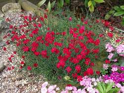 Гвоздика травянка Brilliant Red (Бриллиант Ред) — это почвопокровное обильноцветущее многолетнее растение высотой 15-20 см. Образует дернинки, которые в конце июня покрываются сплошным ковром сверкающе-красных цветков.