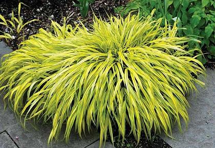 Хаконехлоя большая Aureola (Ауреола). Изящный злак с длинными золотистыми поникающими листьями. Весной и осенью листья в периоды заморозков могут краснеть. Вполне зимостойка в средней полосе России. Однако лучше размещать эту декоративную культуру в защищенных от ветра местах. Предпочитает полутень. На зиму мульчируют.