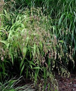 Образует плотную тепло растущую кочку, высотой до 1,2 м на влажных плодородных почвах. Кочка очень прямая, если растет на солнце, в тени становится рыхлой. Цветение начинается в середине лета. При роспуске колоски зеленые, потом становятся бронзово-красными, а по мере старения приобретают лососево-желтую окраску. Цветки, состоящие из плоских свисающих колосков, держатся на тонком стебле, который поднимается над листьями. Великолепные колоски сохраняются всю зиму, они особенно эффектны, покрытые инеем или припорошенные снегом, хороши для срезки и сухих букетов. Листья довольно широкие, до 2 см шириной и 20 см длиной, летом салатно-зеленые, осенью покрываются золотистыми пятнами. В прохладном климате, таком как у нас, лучше сажать на полном солнце. Растет на любых почвах. На влажных почвах дает самосев, но маленькие проростки легко погибают, и только небольшая часть их достигает взрослого состояния.