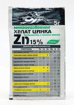 Хелат Цинка — предназначен для полива и опрыскивания овощных, плодово-ягодных, горшечных, цветочно-декоративных культур в качестве профилактики недостатка (хлороза) цинка.