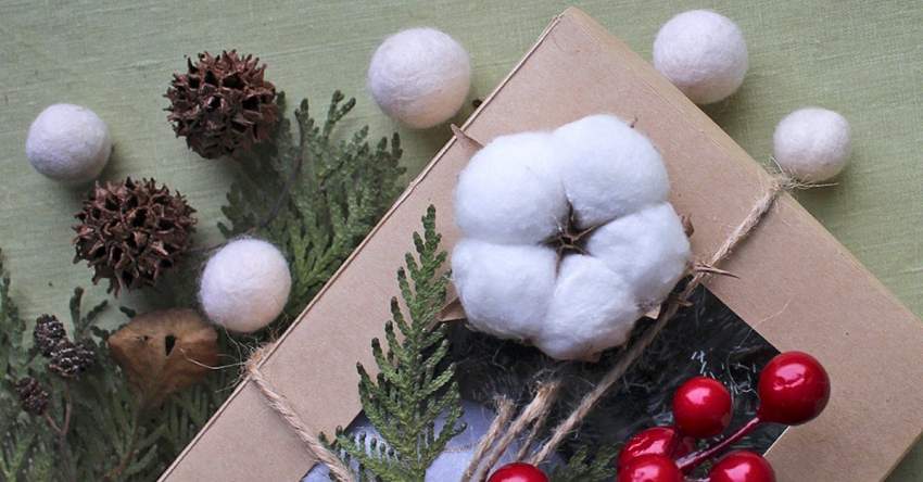 Зимой каждому из нас не хватает тепла и общения с природой. Поэтому и украшения из натуральных материалов кажутся особенно уютными и милыми. Помимо традиционных шишек, желудей и грецких орехов зимние елки и венки можно украсить и хлопком — он поддержит натуралистическую концепцию, а также частично примет на себя роль «снега».