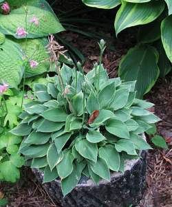 Маленькая хоста с аккуратными каплевидными листьями. Розетка симметричная. Сорт очень привлекательный.
