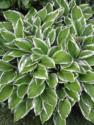 Хоста Abiqua Moonbeam (Абиква Мунбим). Красивый кустарник с округлыми листьями сине-зеленого цвета, с желтым окаймлением. Они примечательны также своей гофрированностью и восковым налетом. Куст раскидистый достигает 40 см в высоту, а цветоносы с лавандовыми цветками увеличиваются до 70 см.