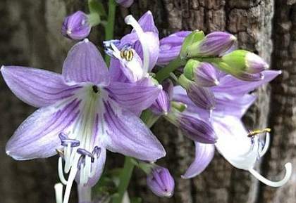 Хоста Allen P. Mc Connell (Аллен Пи Мак Коннелл). Маленькая хоста. Листья сердцевидные, средне-зеленые с очень тонкой белой каймой. Цветки светло-фиолетовые. Высота 20 см. Разрастается быстро.